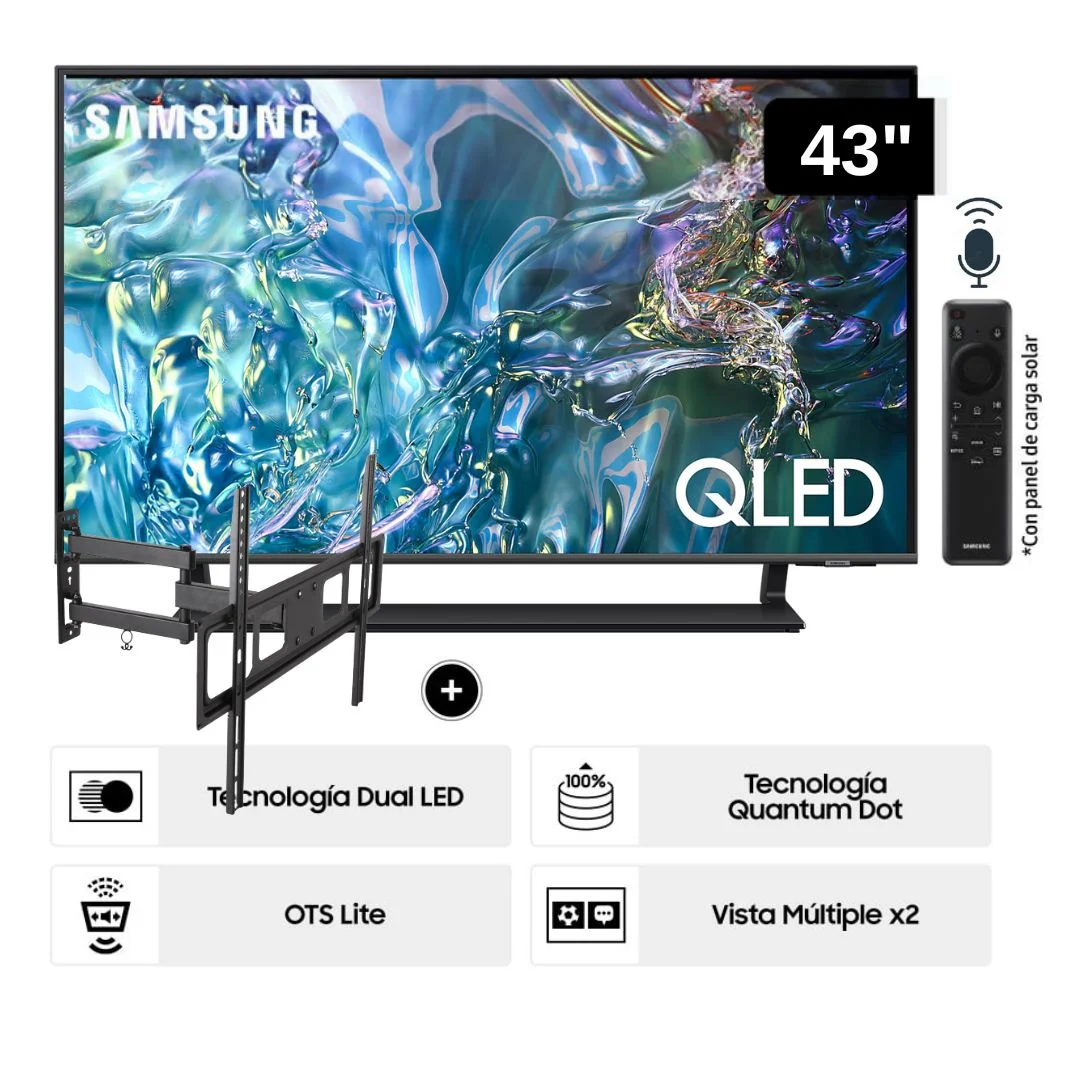 Inicio Tecnología Televisor Samsung QLED Tizen OS Smart Tv 43 4K QN43Q65DAGXPE + Rack Giratorio