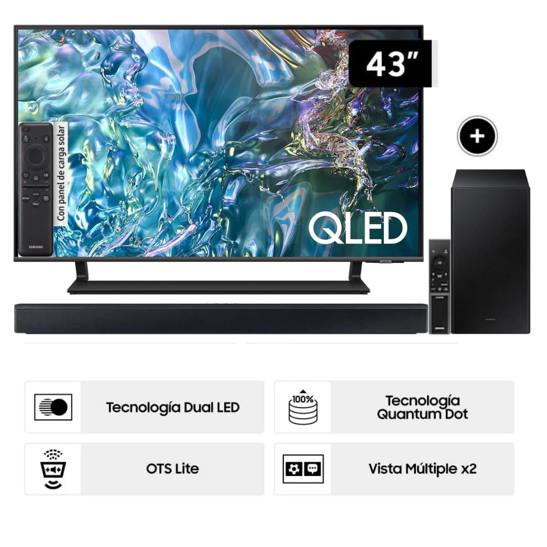 Inicio Tecnología Televisor Samsung QLED Tizen OS Smart Tv 43 4K QN43Q65DAGXPE + Soundbar HW C450